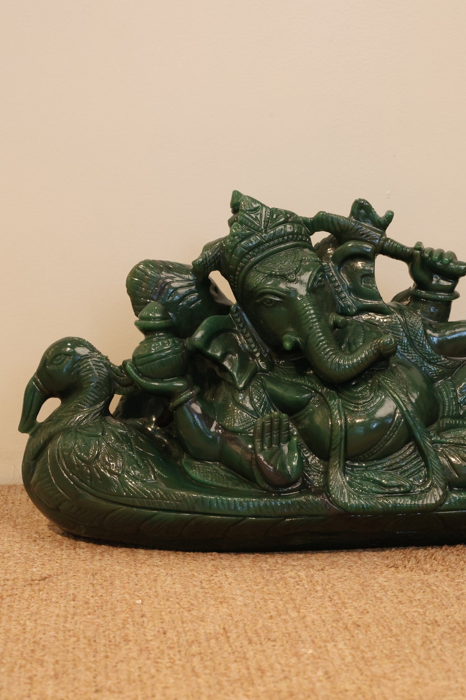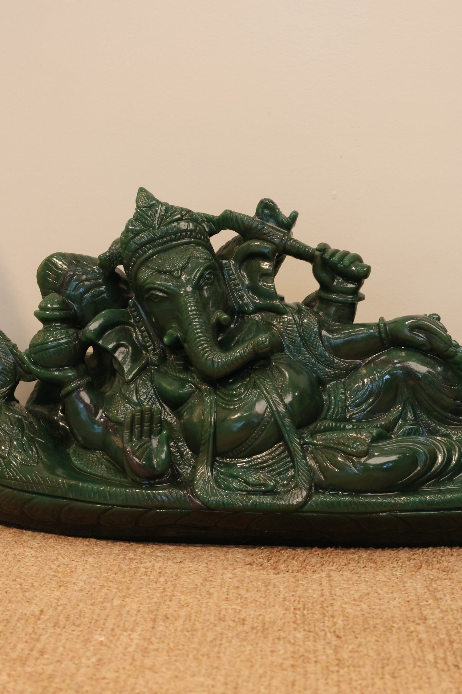 IDOL: Attributed as the harbinger of good luck, Ganesha is widely revered as the remover of obstacles and the god of intellect and wisdom. As the god of auspicious beginnings, he is honored at the start of rites & ceremonies. This beautiful sculpture of Lord Ganesha is hand-carved from natural stone.