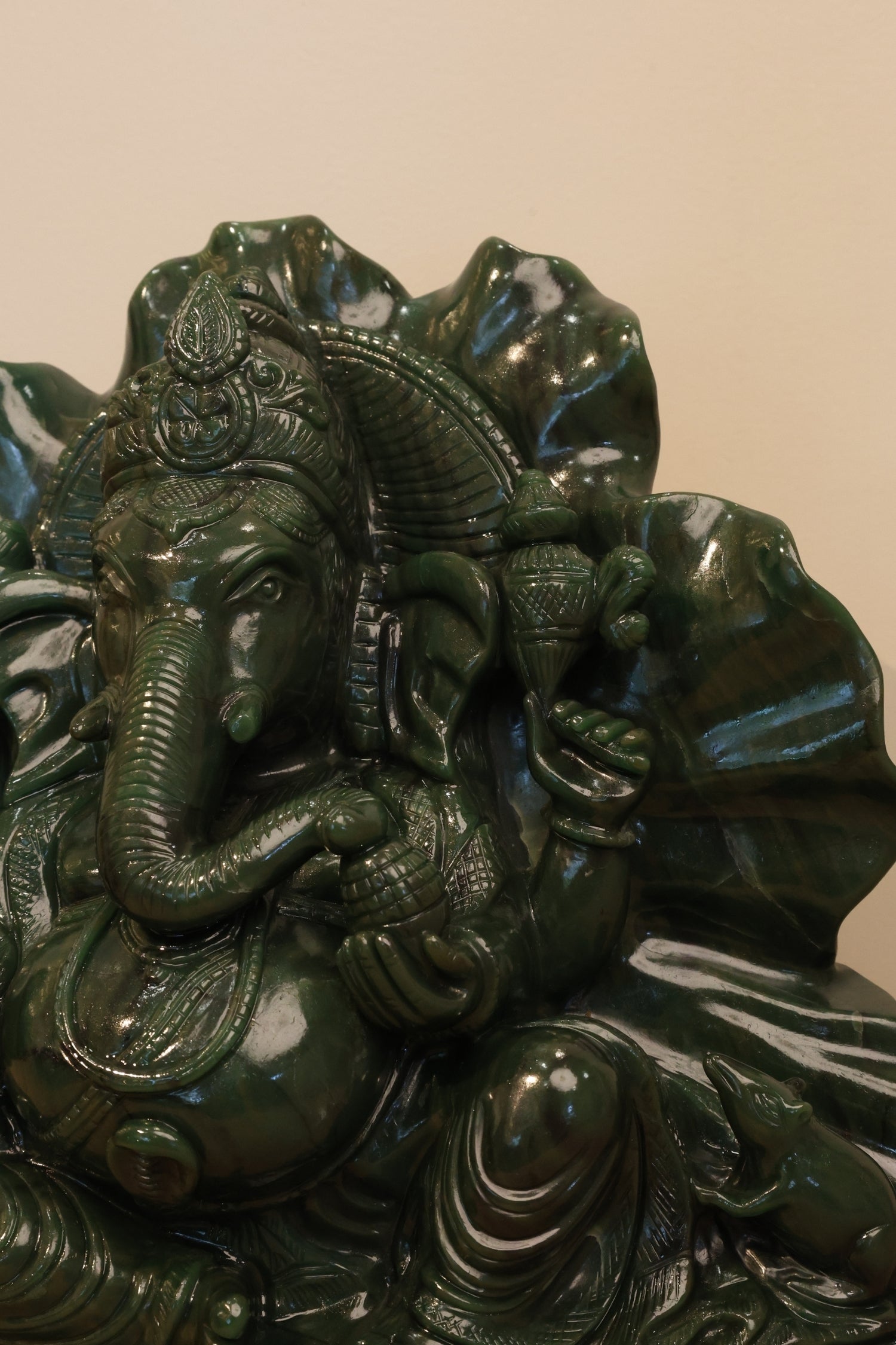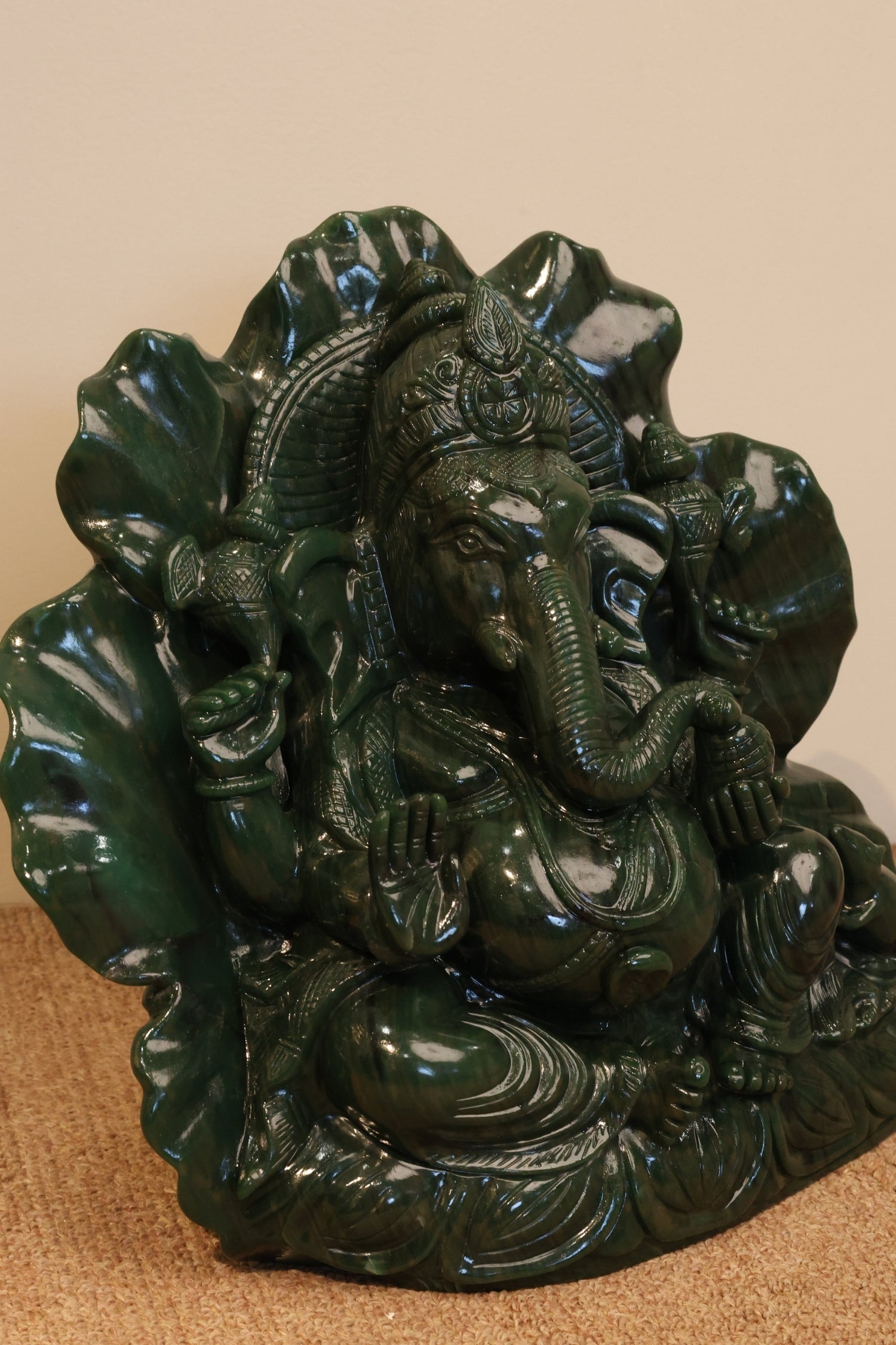 IDOL: Attributed as the harbinger of good luck, Ganesha is widely revered as the remover of obstacles and the god of intellect and wisdom. As the god of auspicious beginnings, he is honored at the start of rites & ceremonies. This beautiful sculpture of Lord Ganesha is hand-carved from natural stone.