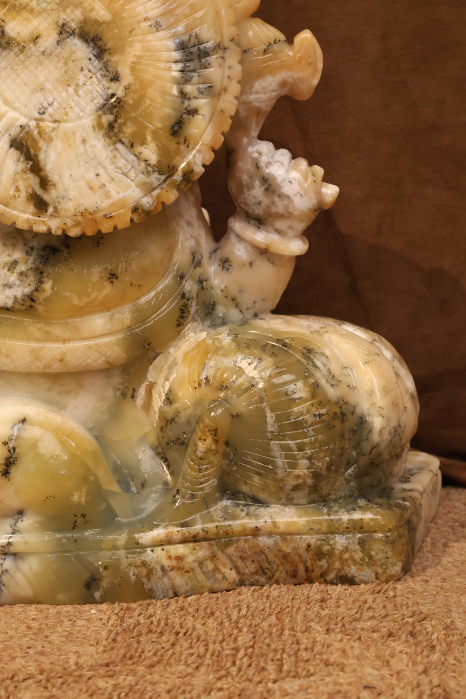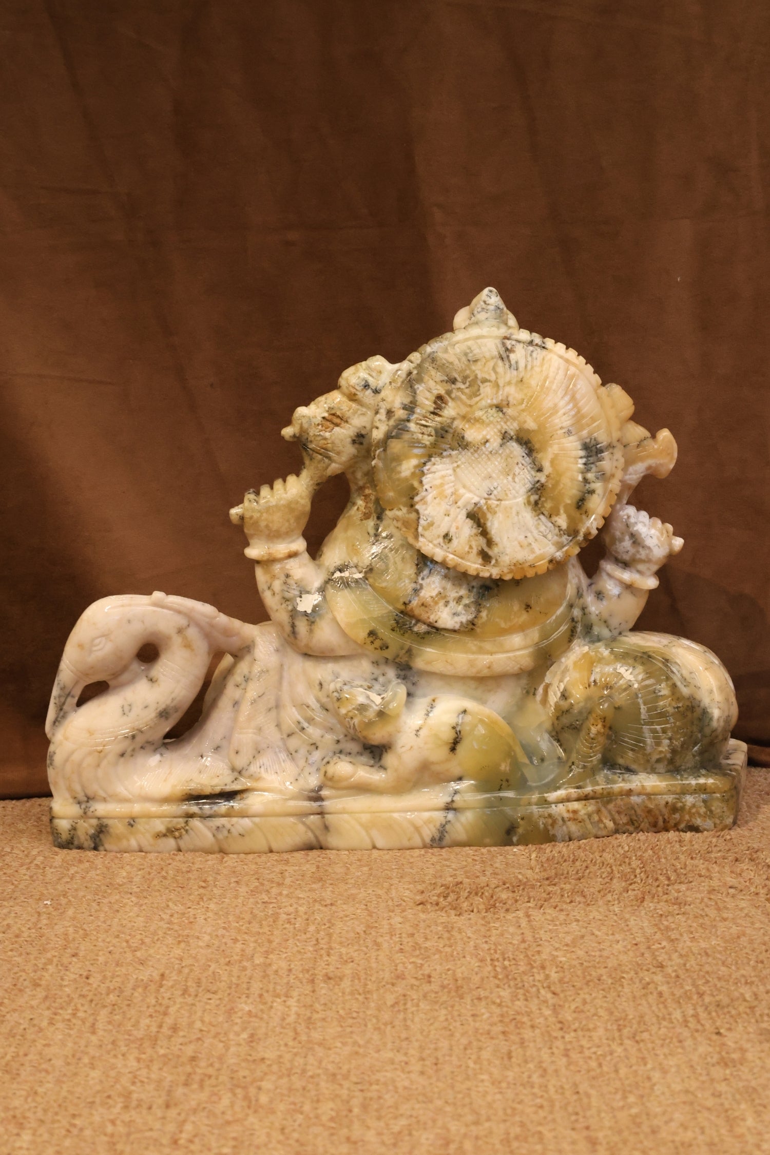 IDOL: Attributed as the harbinger of good luck, Ganesha is widely revered as the remover of obstacles and the god of intellect and wisdom. As the god of auspicious beginnings, he is honored at the start of rites & ceremonies. This beautiful sculpture of Lord Ganesha is hand-carved from natural stone.