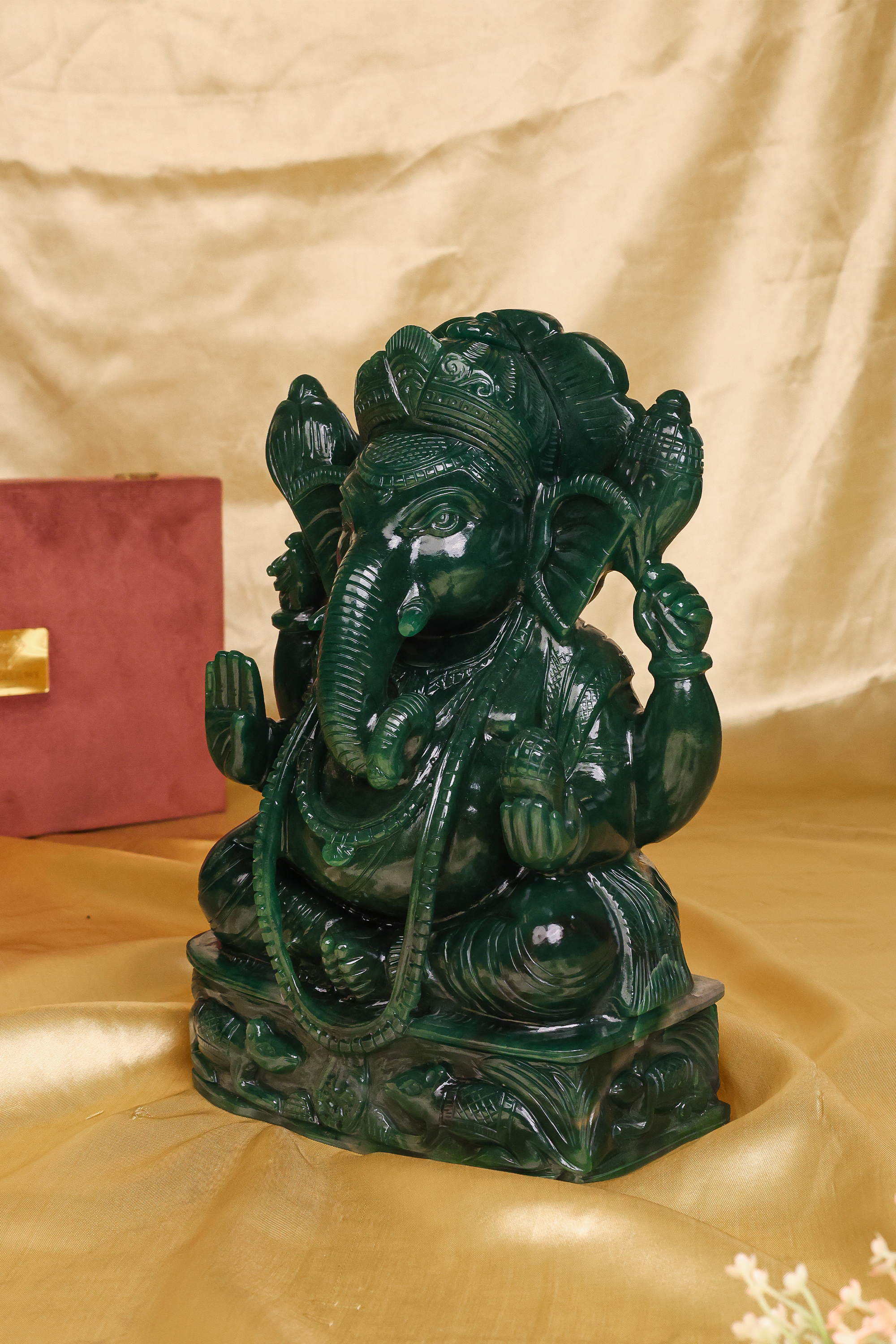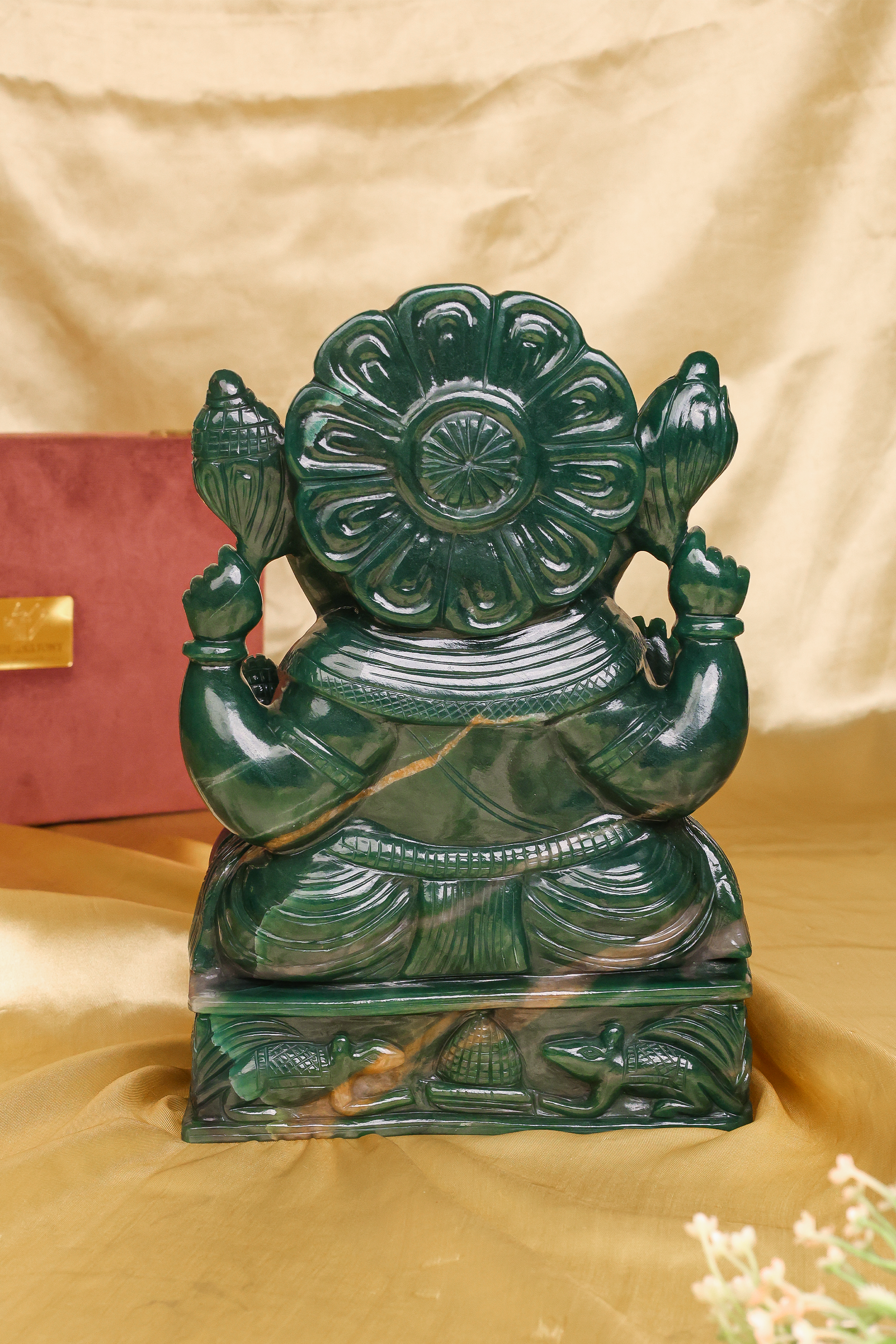 IDOL: Attributed as the harbinger of good luck, Ganesha is widely revered as the remover of obstacles and the god of intellect and wisdom. As the god of auspicious beginnings, he is honored at the start of rites & ceremonies. This beautiful sculpture of Lord Ganesha is hand-carved from natural stone.