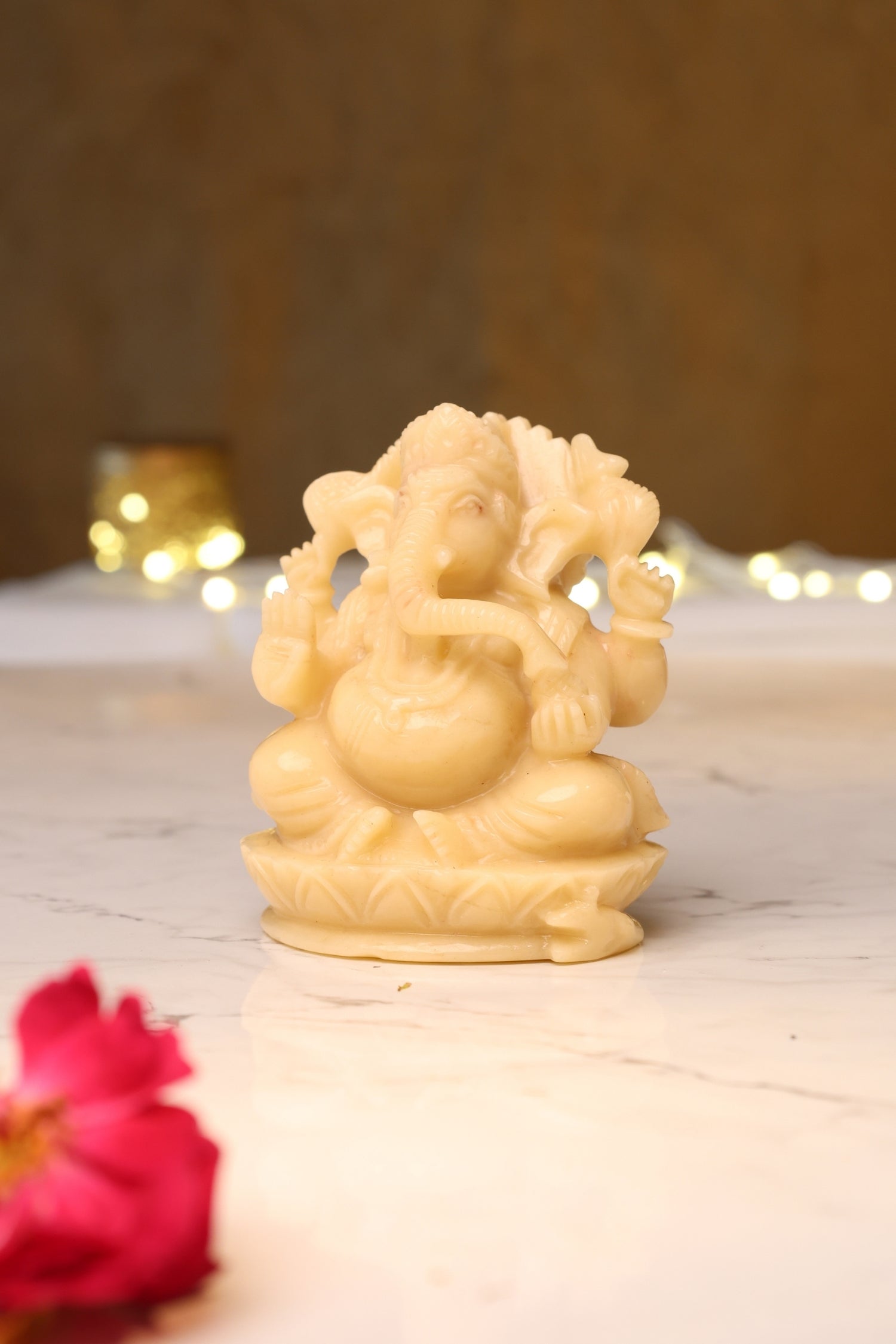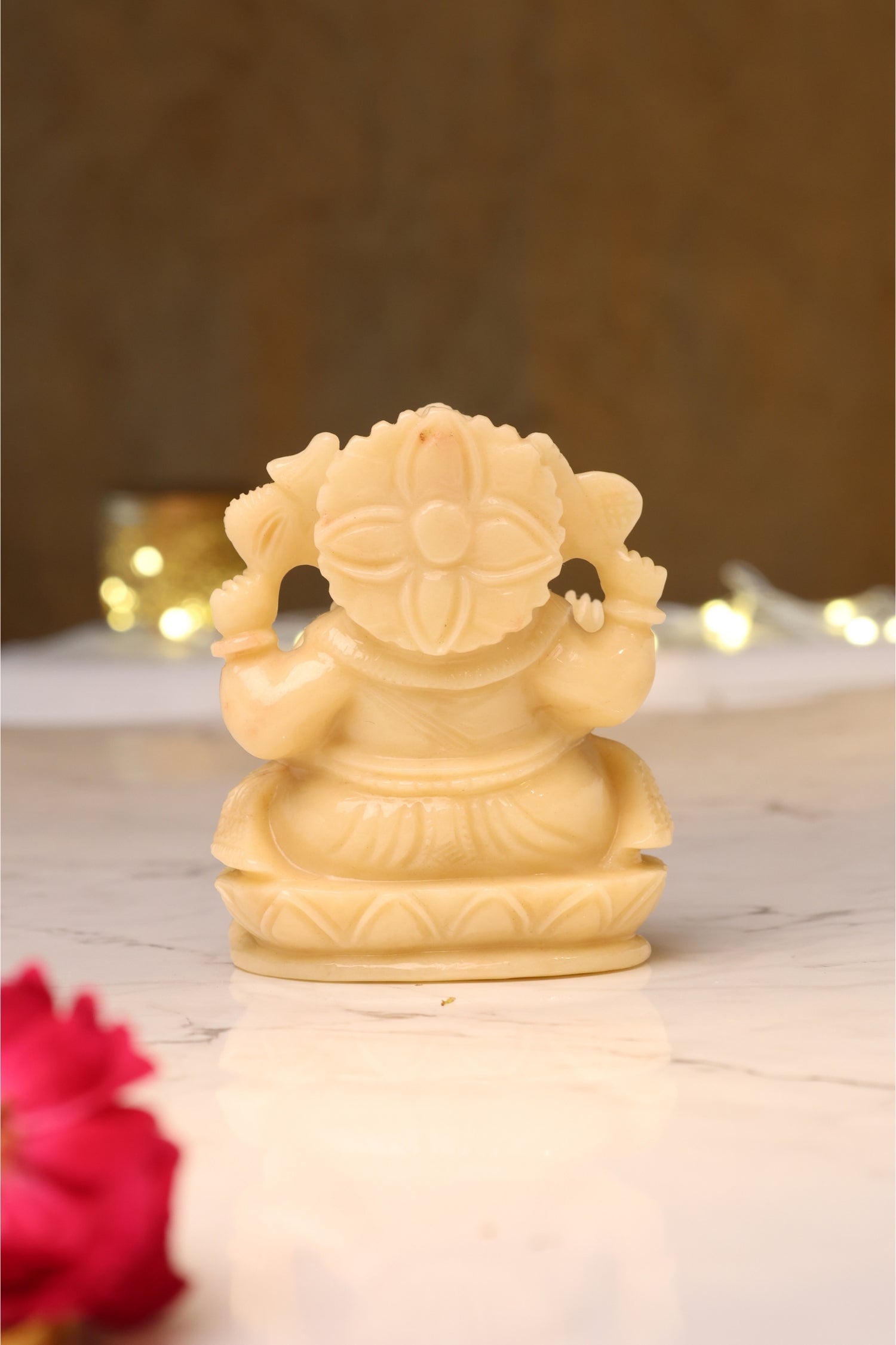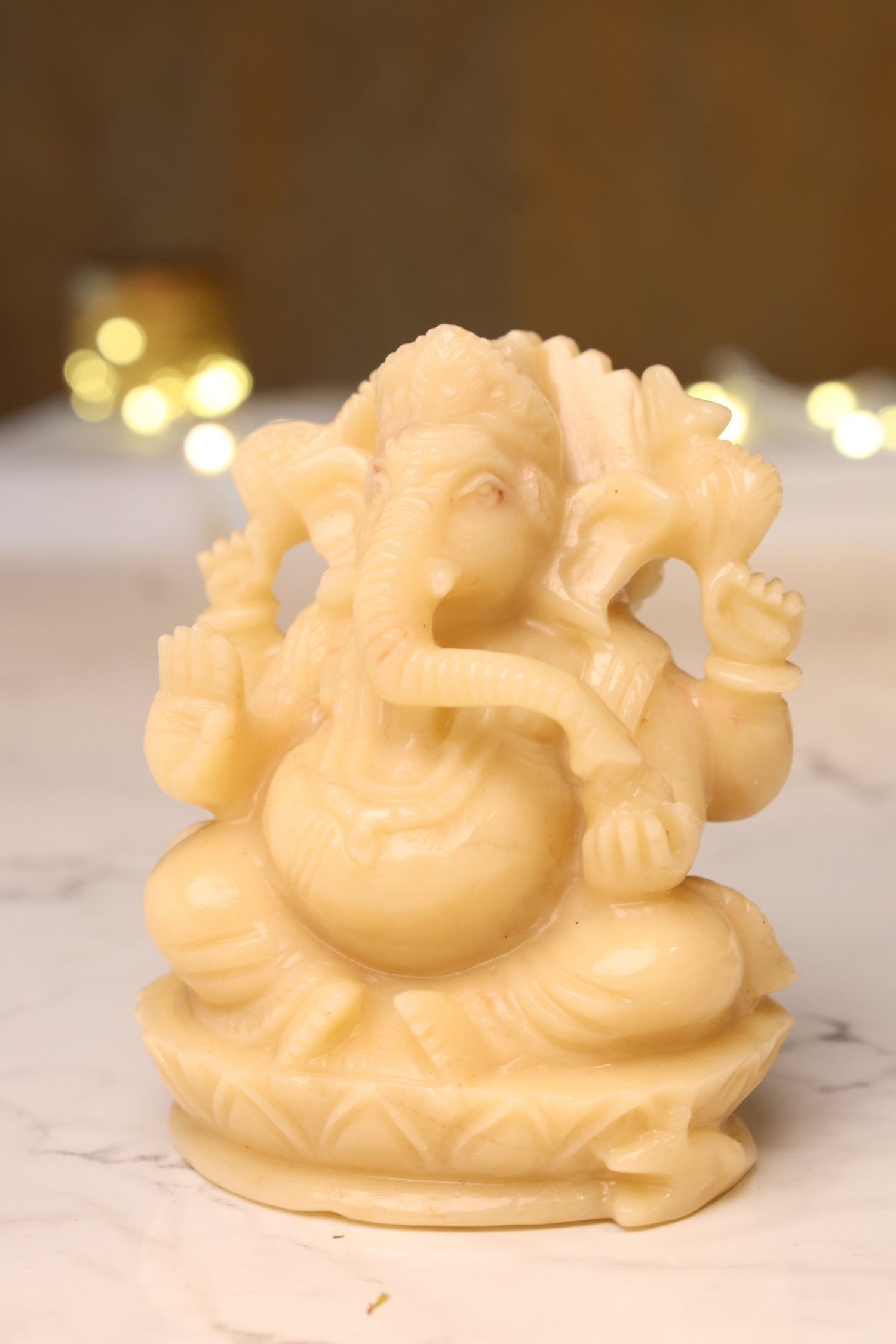IDOL: Attributed as the harbinger of good luck, Ganesha is widely revered as the remover of obstacles and the god of intellect and wisdom. As the god of auspicious beginnings, he is honored at the start of rites & ceremonies. This beautiful sculpture of lord Ganesha is hand-carved from natural semi-precious stone.