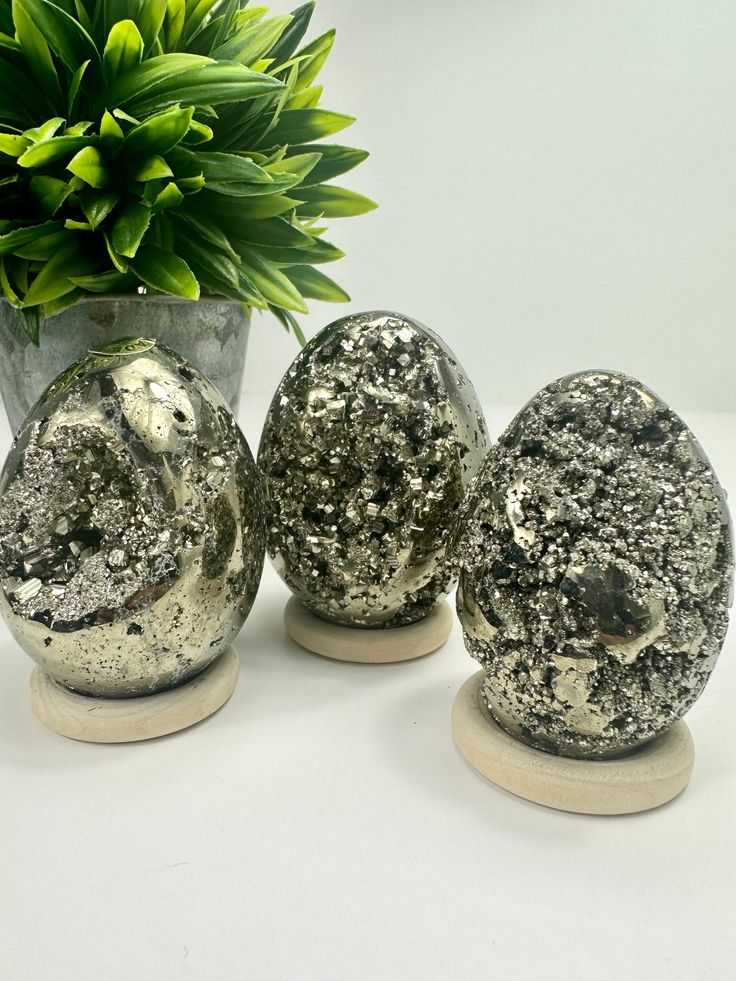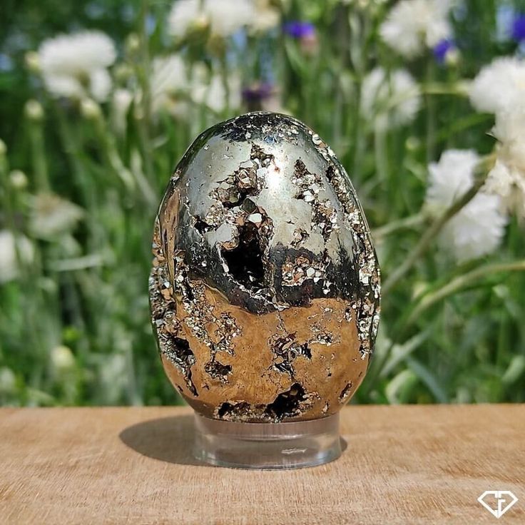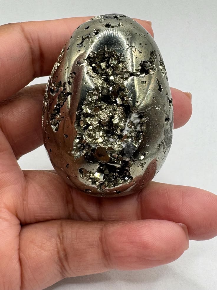 Natural Pyrite Egg known as the Money Magnet crystal. Attract wealth, prosperity and protection with this powerful pyrite gemstone decor.