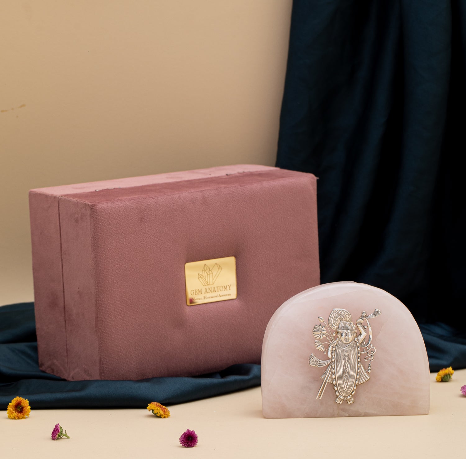 NATURAL ROSE QUARTZ STONE PURE SILVER SHRINATH JI