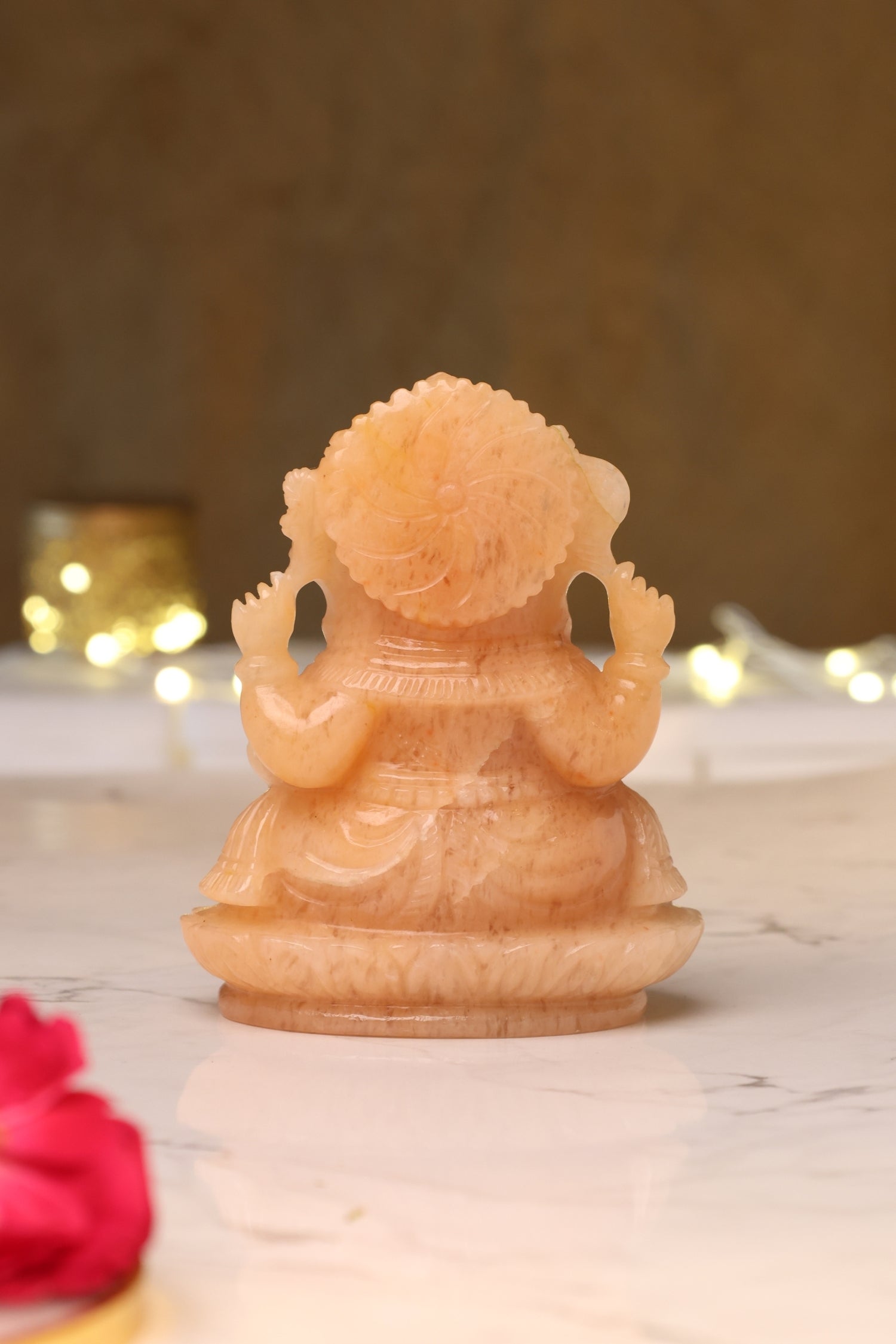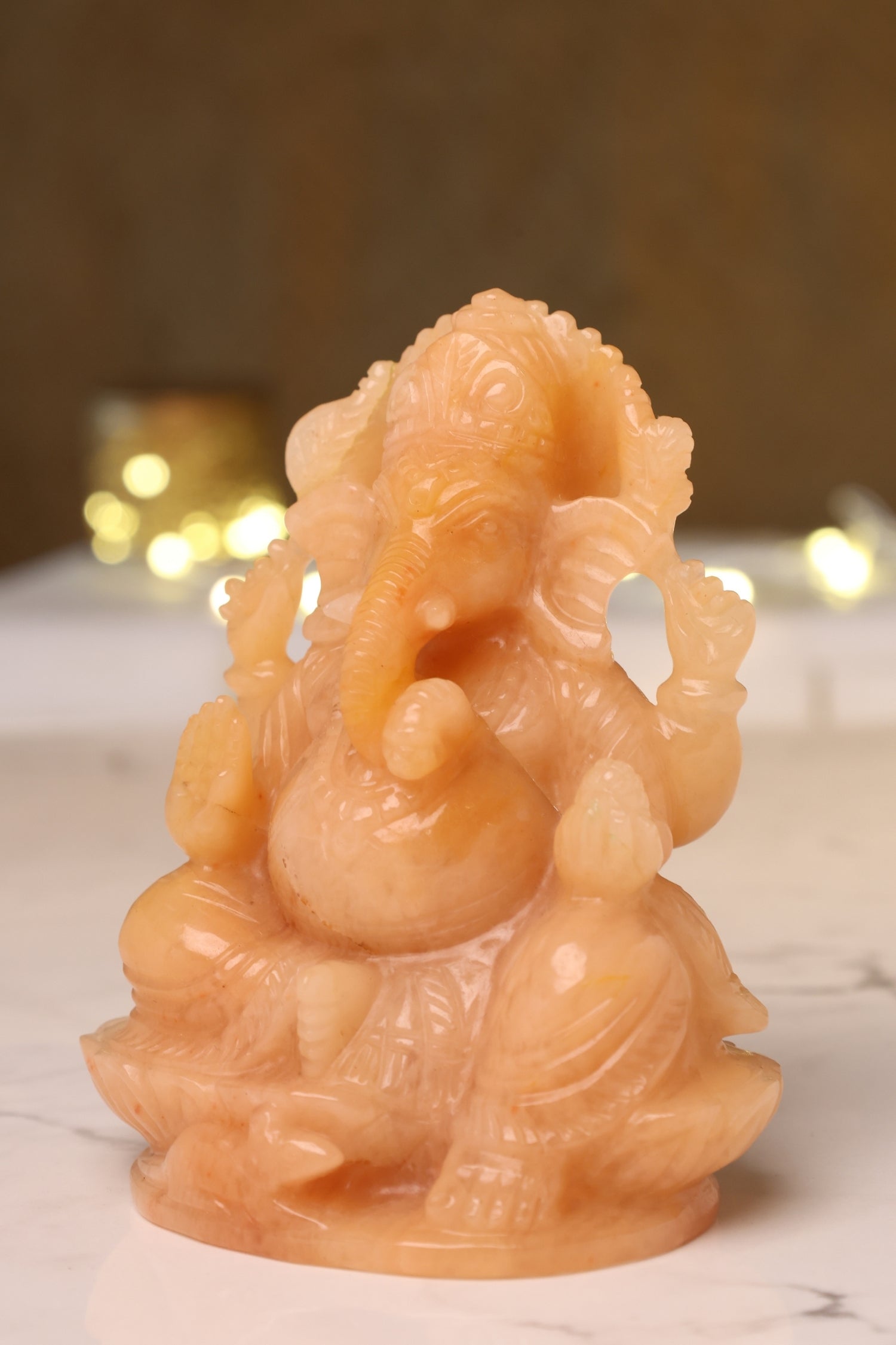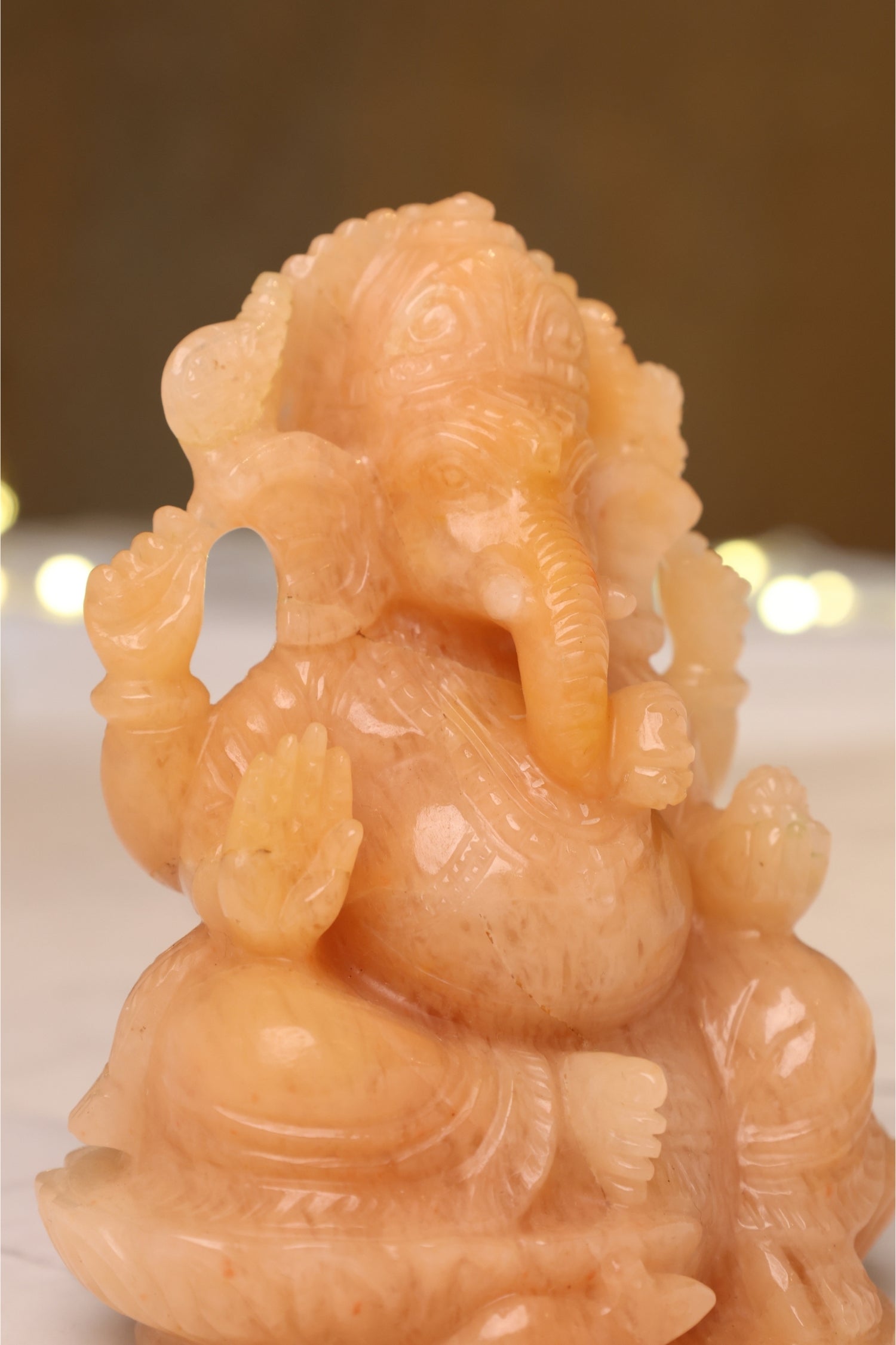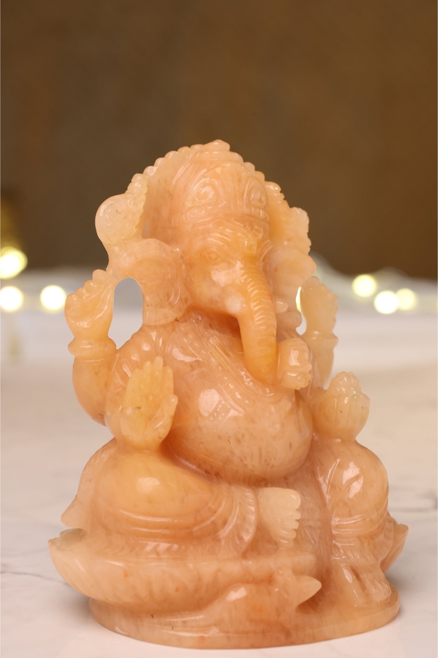 IDOL: Attributed as the harbinger of good luck, Ganesha is widely revered as the remover of obstacles and the god of intellect and wisdom. As the god of auspicious beginnings, he is honored at the start of rites & ceremonies. This beautiful sculpture of lord Ganesha is hand-carved from natural semi-precious stone.