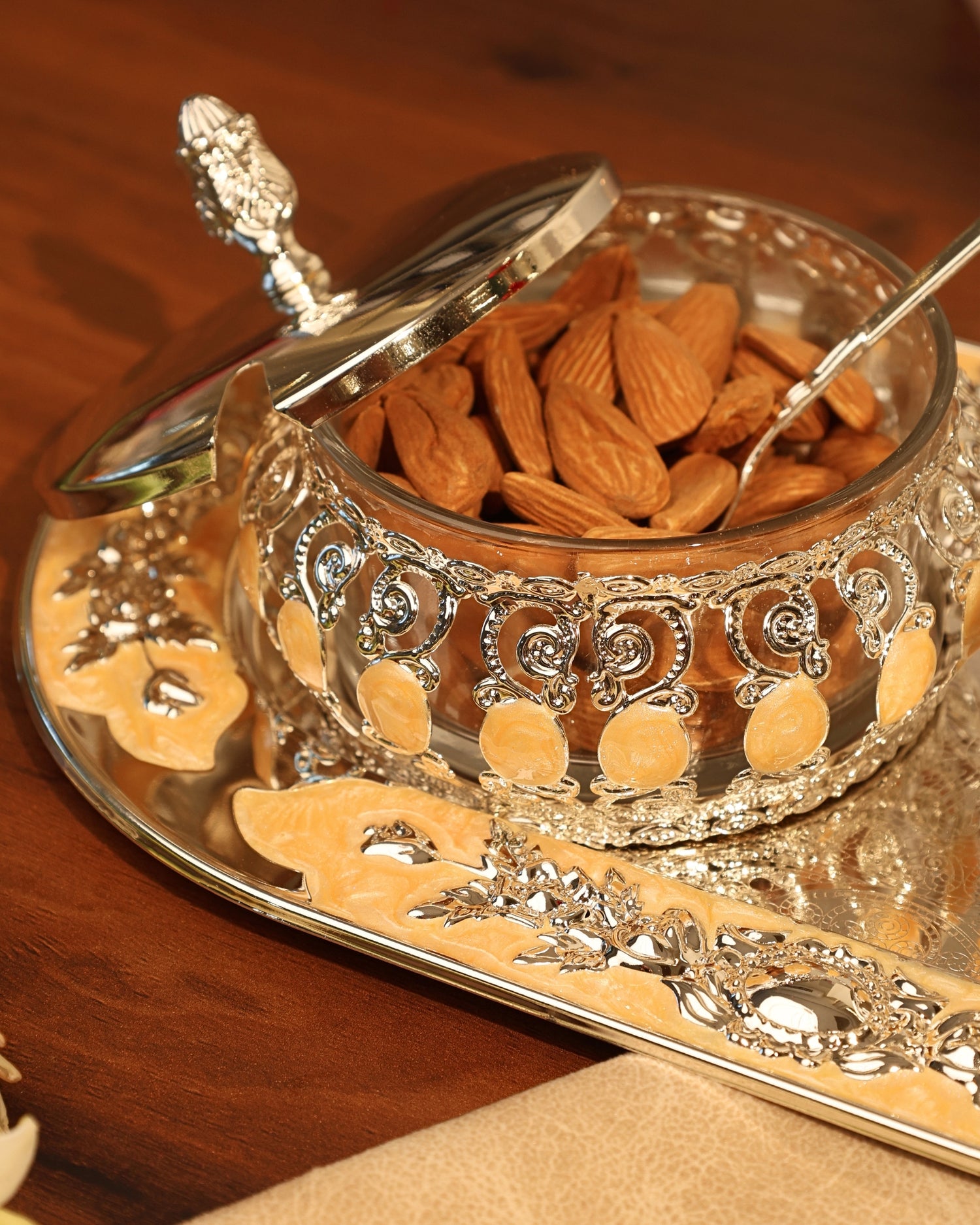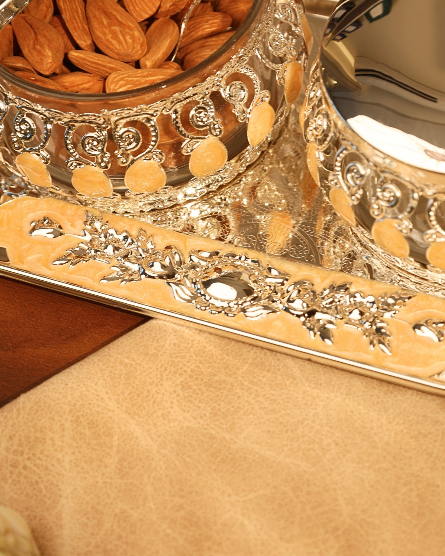 Magnificent nut bowls giving off a regal look to make a noble gift object of art nestled in an impressive setting.