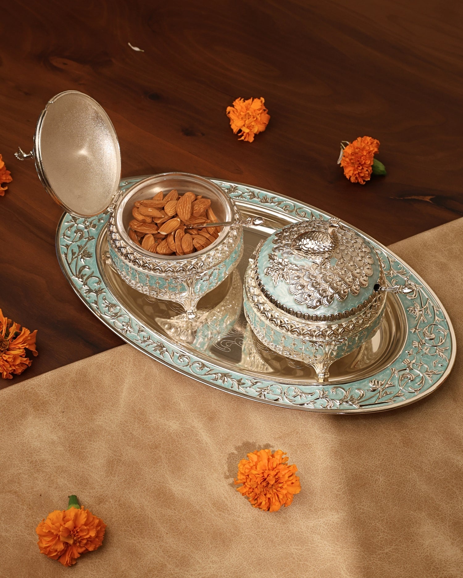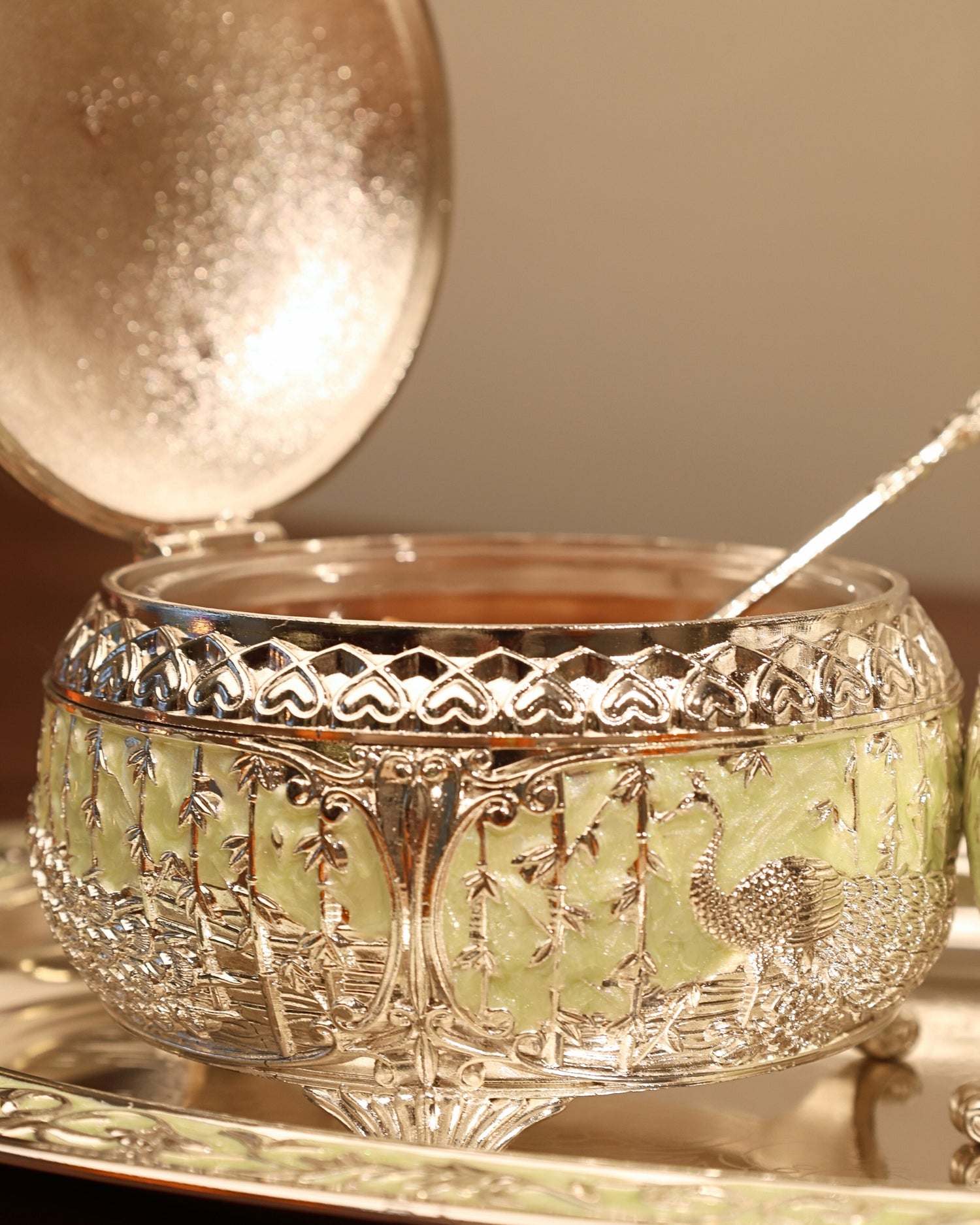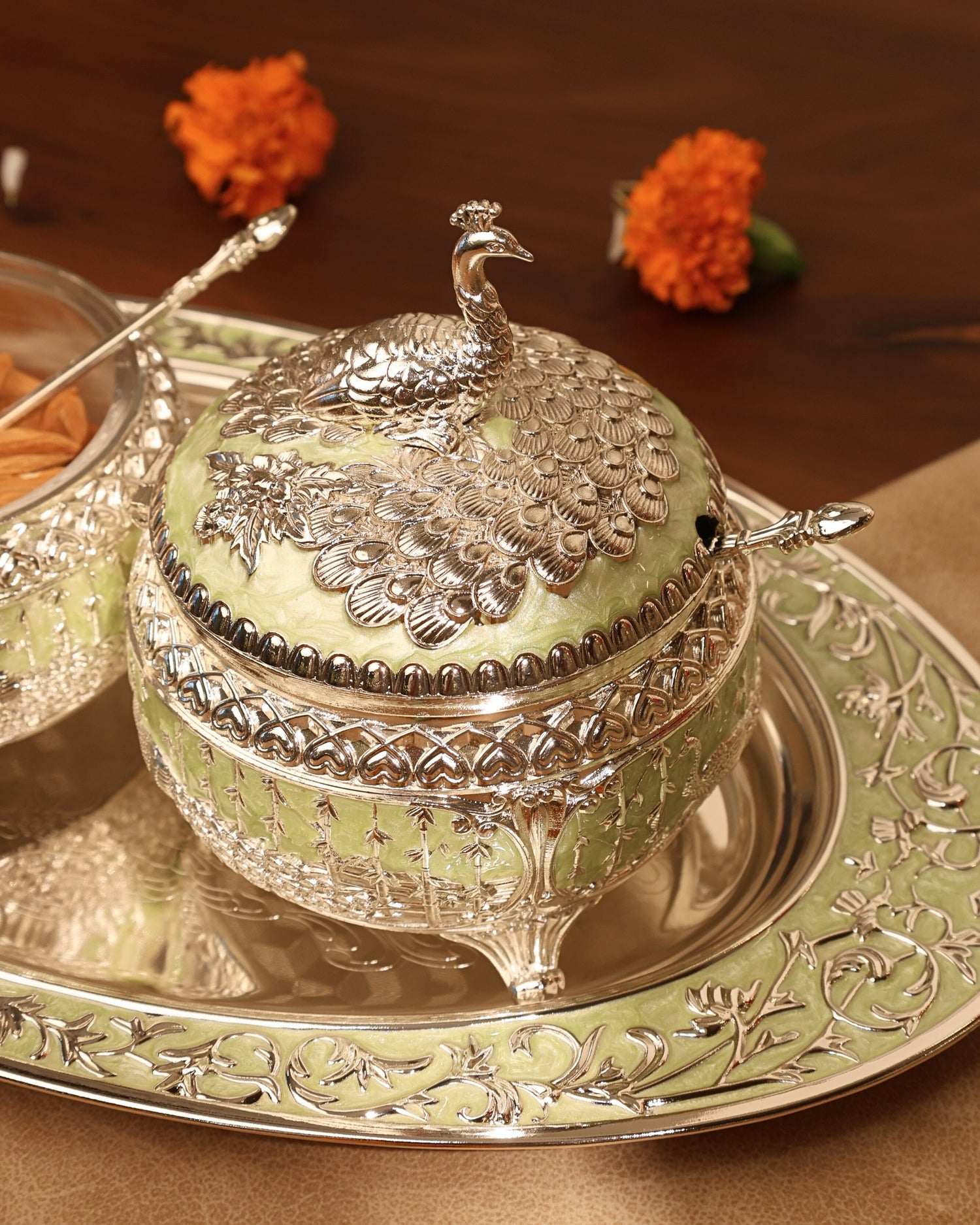 Add a whimsical twist to your table with our adorable Peacock on top sugar pot.