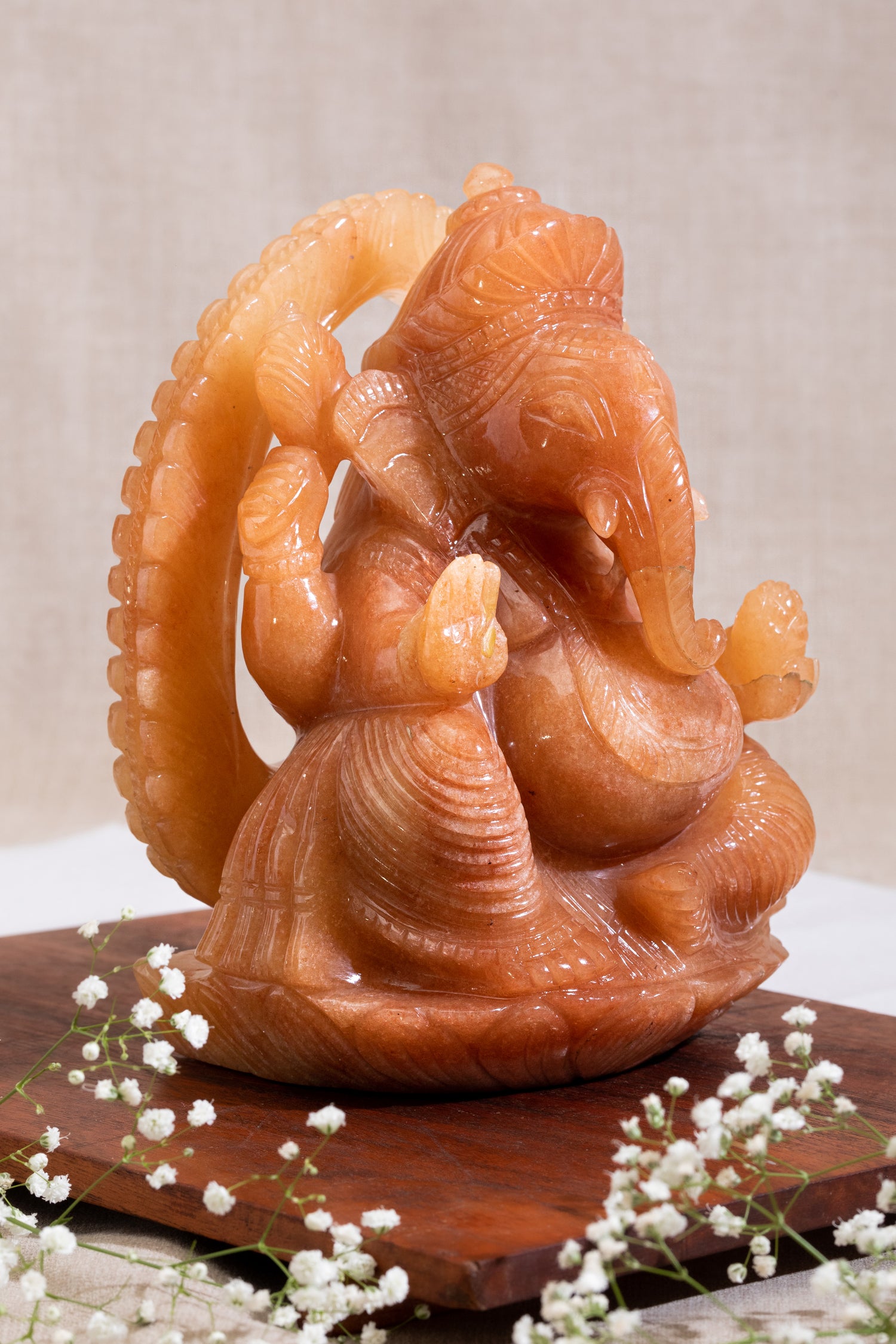 IDOL: Attributed as the harbinger of good luck, Ganesha is widely revered as the remover of obstacles and the god of intellect and wisdom. As the god of auspicious beginnings, he is honored at the start of rites & ceremonies. This beautiful sculpture of lord Ganesha is hand carved from natural semi-precious stone.
